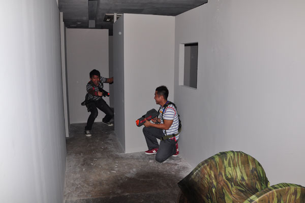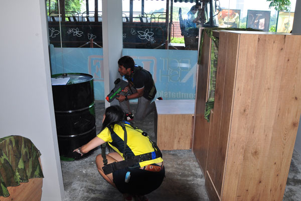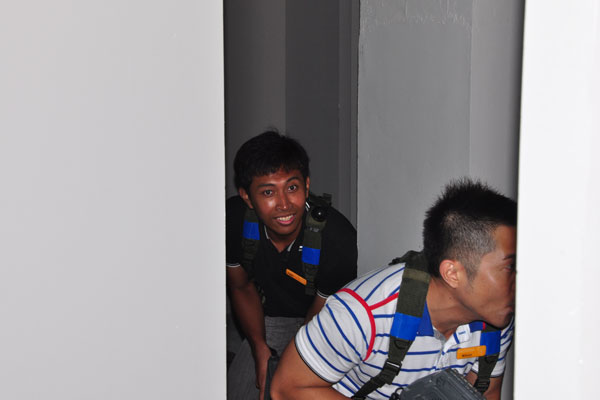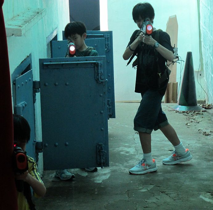 Your journey in the evening begins once you’ve stepped foot into our mocked up planning room and briefed real time by our in house Captain about the crisis situation in Fort Siloso. Once the brief is over you will be kitted up with military uniform, a battle vest and laser gaming gun.